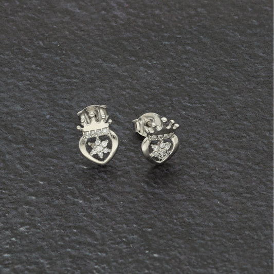 Sterling Silver 925 King Heart Shaped Earrings - FKJERNSL9405