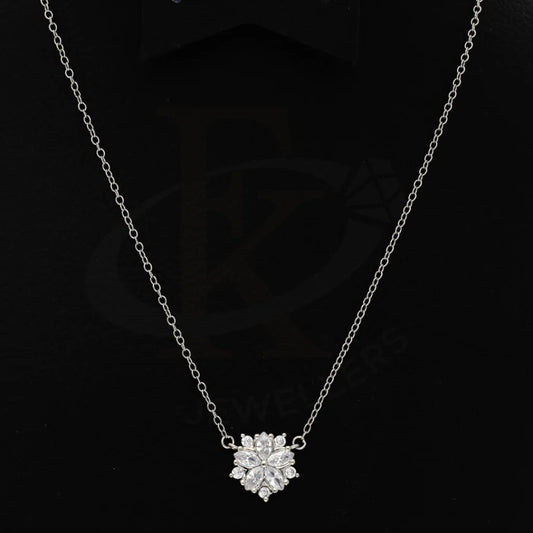 Sterling Silver 925 Round Folwer American Diamond Necklace - FKJNKLSL8590