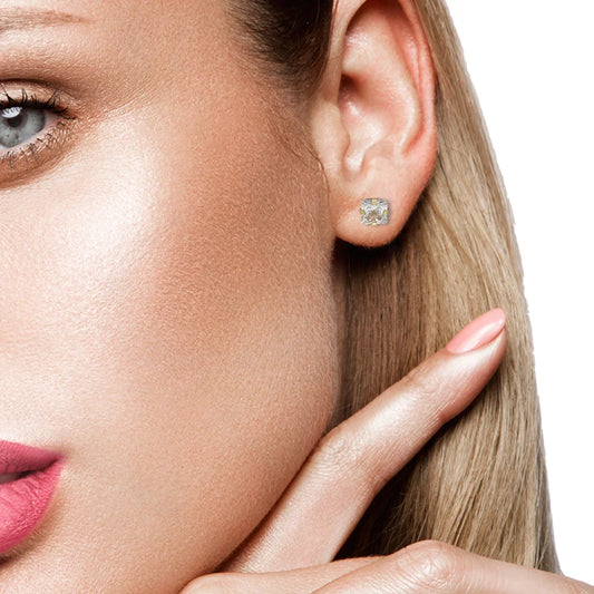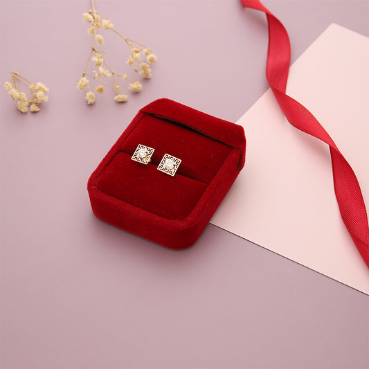 Gold Square Solitaire Earrings 18KT - FKJERN18K8843
