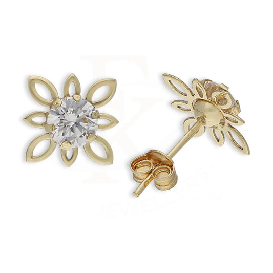Gold Flower Shaped Solitaire Stud Earrings 18KT - FKJERN18K5568