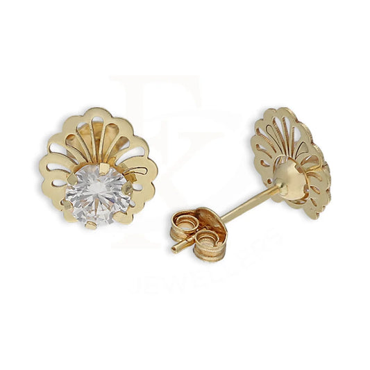 Gold Flower Shaped Solitaire Stud Earrings 18KT - FKJERN18K2753