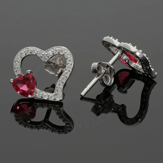 Sterling Silver 925 Heart with Solitaire Stud Earrings - FKJERNSL2510