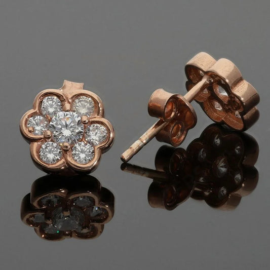 Sterling Silver 925 Rose Gold Plated Flower Shaped Solitaires Stud Earrings - FKJERNSL2505