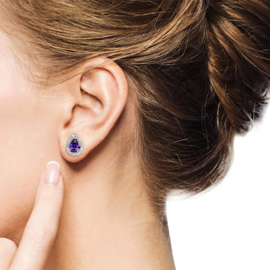 أقراط سوليتير من الفضة الإسترلينية عيار 925 على شكل كمثرى - FKJERNSL2574