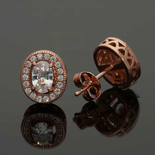 أقراط سوليتير بيضاوية الشكل من الفضة الإسترلينية عيار 925 مطلية بالذهب الوردي - FKJERNSL2677