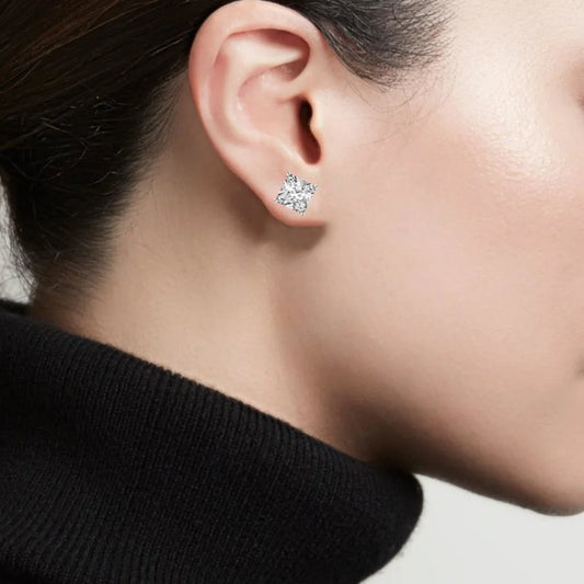 أقراط سوليتير من الفضة الإسترلينية عيار 925 على شكل زهرة - FKJERNSL2555