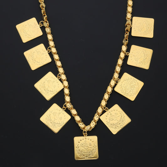 Gold Layered Lira Drop Necklace 21KT - FKJNKL21KM10334