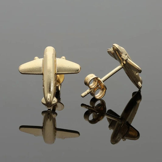 Gold Airplane Shaped Stud Earrings 18KT - FKJERN18K2423