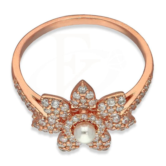 Sterling Silver 925 Rose Gold Plated Star Shaped with Pearl Ring - FKJRNSL2267