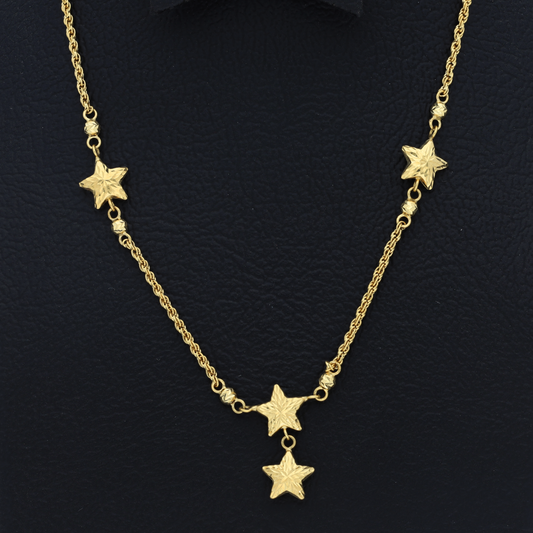 Gold Necklace (Beaded Chain with Star & Crescent Moon Pendant) 21KT - FKJNKL21KM10179