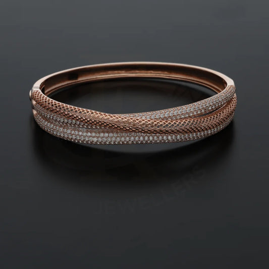Sterling Silver 925 Rose Gold Plated Studded Zircon Bangle - FKJBNGSL7935