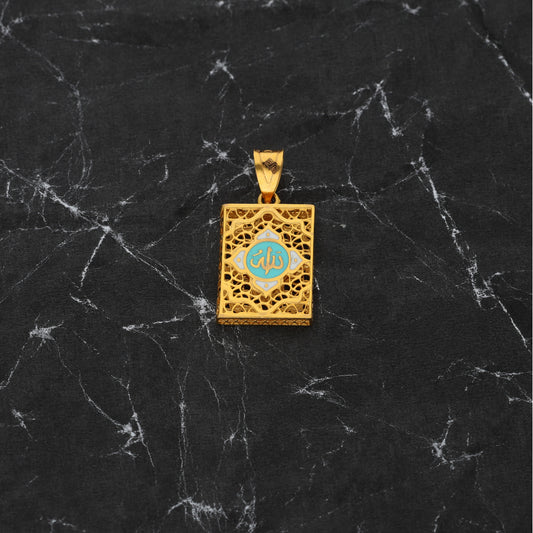 Gold Rectangle Shaped Allah Pendant 21KT - FKJPND21KM9942