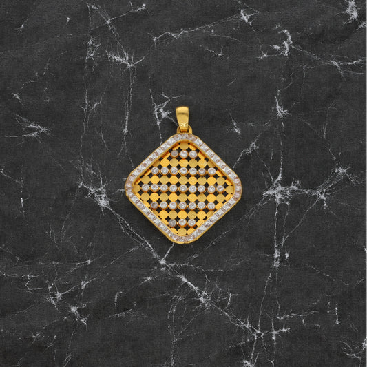 Gold Zircon Square Shaped Pendant 21KT - FKJPND21KM9946