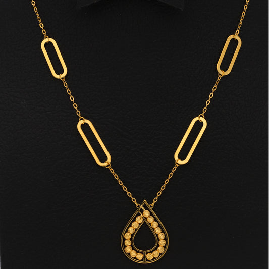 Gold Necklace (Chain With Beaded Tear Drop Shaped Pendant) 21KT - FKJNKL21KM9855