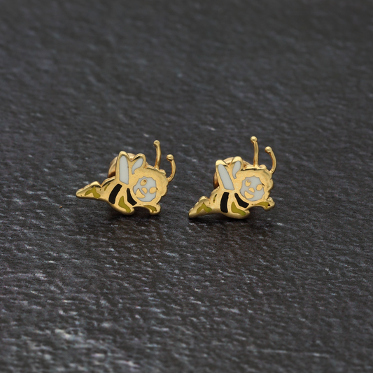 Gold Cartoon Honeybee Earrings 18KT - FKJERN18K9375