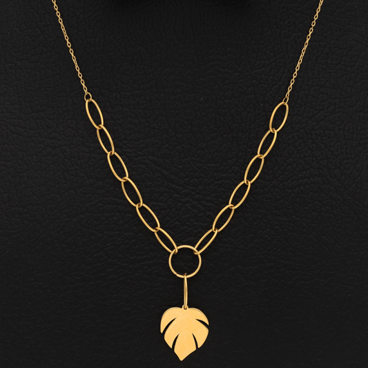 Gold Stud Leaf Shaped Necklace 18KT - FKJNKL18K9365