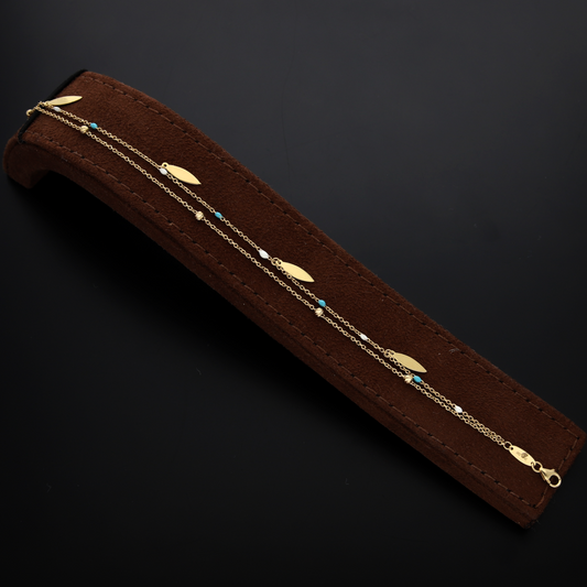 Gold Hanging Leaf Shaped Anklet 18KT - FKJANKL18K9033