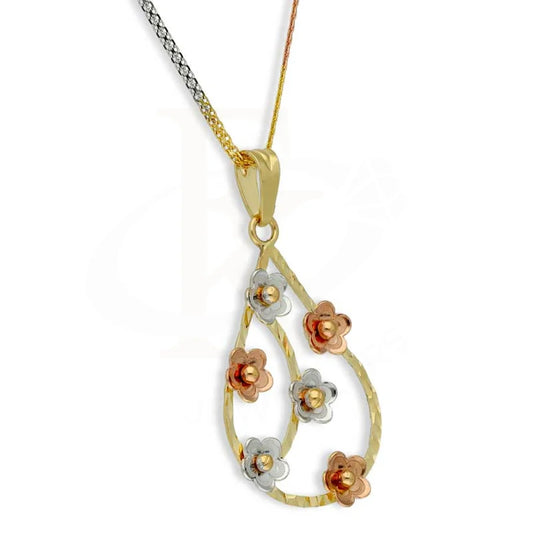 Gold Tri Tone Necklace (Chain with Pear Shaped Flower Pendant) 18KT - FKJNKL18K2817