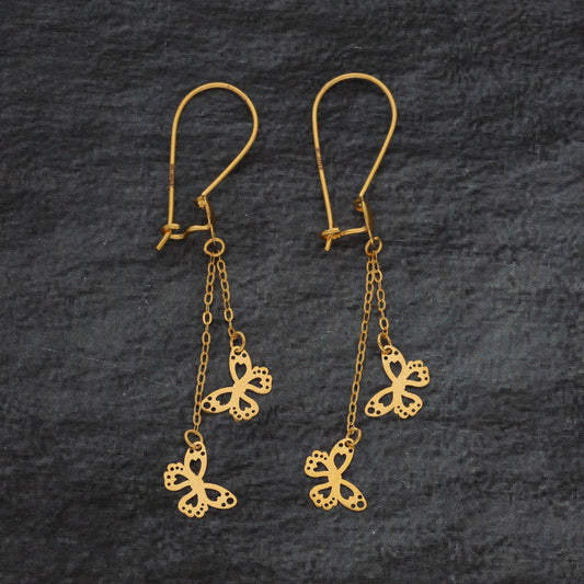 Gold Hanging Butterflies Shaped Earrings 21KT - FKJERN21KM9584