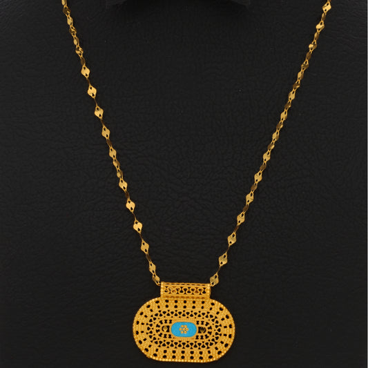Gold Necklace (Chain With Intricate Rounded Rectangle Shaped Pendant) 21KT - FKJNKL21KM9882