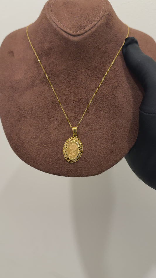 Gold Necklace (Chain with Rose Motif in Oval Shaped Pendant) 21KT - FKJNKL21KM10186