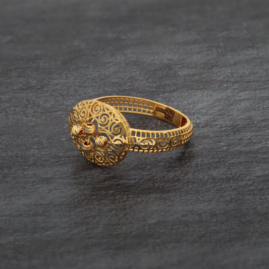 Gold Round Spiral Design Ring 21KT - FKJRN21KM9683