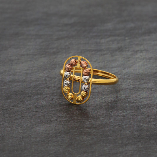 Gold Beaded Oval Shaped Ring 21KT - FKJRN21KM9856