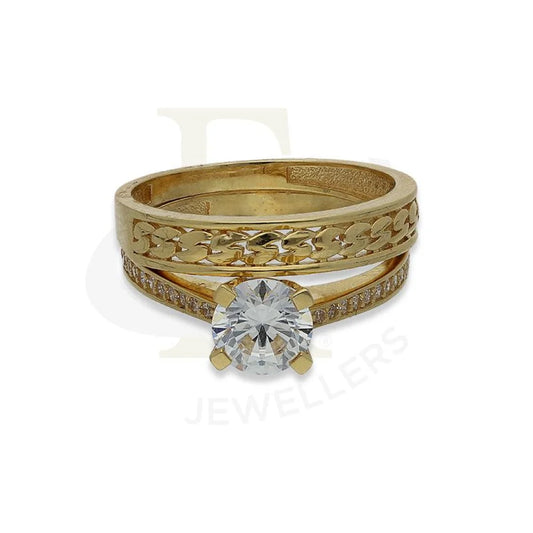 Gold Round Shaped Swarovski Solitaire Twin Ring in 18KT - FKJRN18K2663