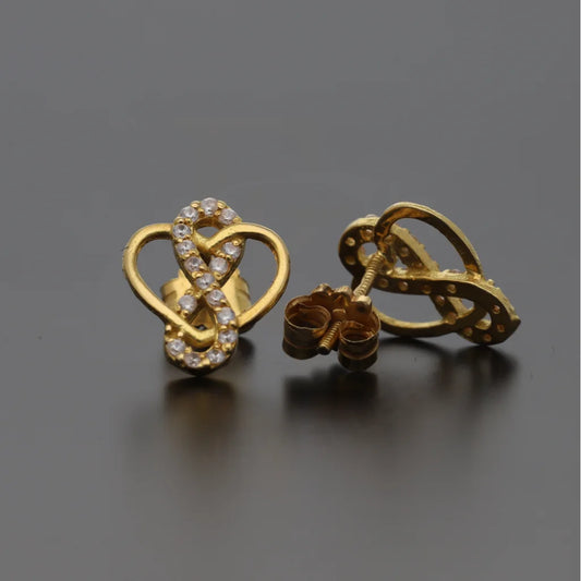 Gold Infinity With Heart Shaped Stud Earrings 18KT - FKJERN18K7840