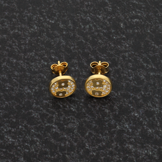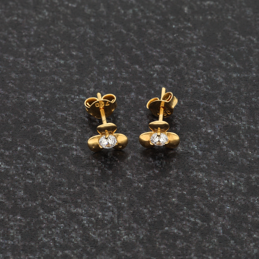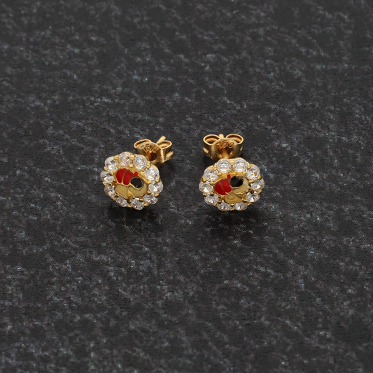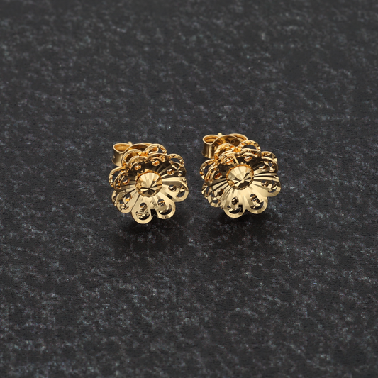 Gold Stud Round Shaped Flower Earrings 18KT - FKJERN18K9283