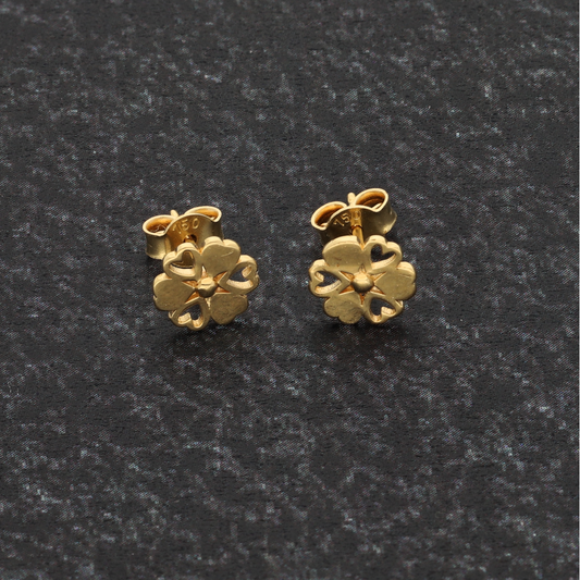 Gold Four Leaf Flower Round Shaped Earrings 18KT - FKJERN18K9288