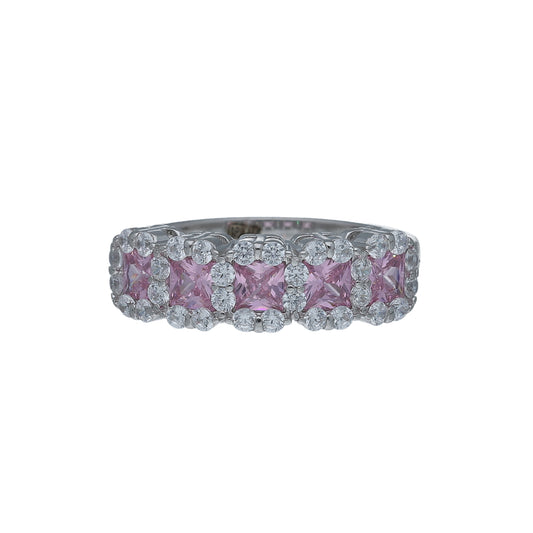 Sterling Silver 925 Pink Halo Band Ring - FKJRNSL10995