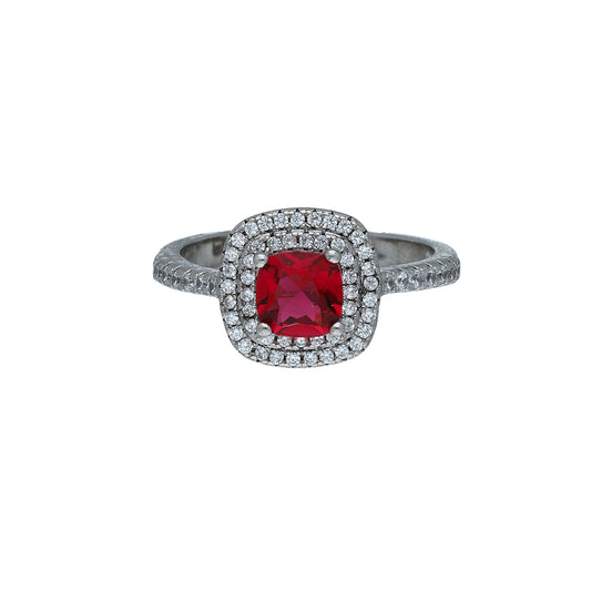 Sterling Silver 925 Cushion Red Ring - FKJRNSL10996