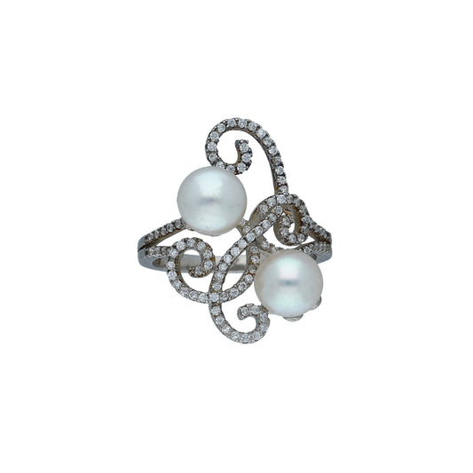 Sterling Silver 925 Dual Pearl Ring - FKJRNSL11005