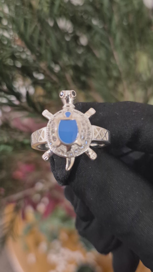 Sterling Silver 925 Blue Accent Tortoise Ring - FKJRNSL10951