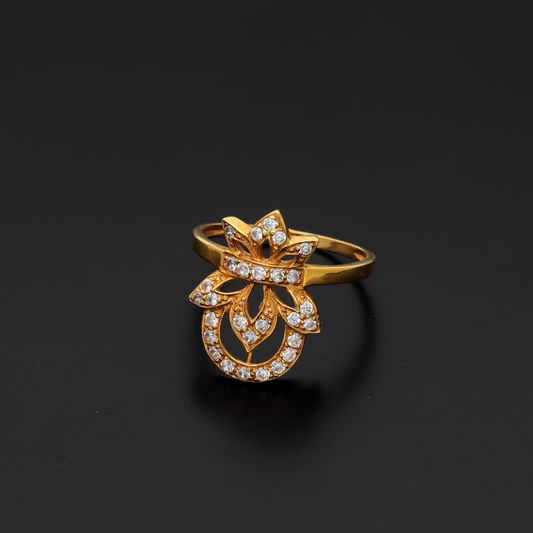 Gold CZ Round Flower in Ring 21KT - FKJRN21K9043