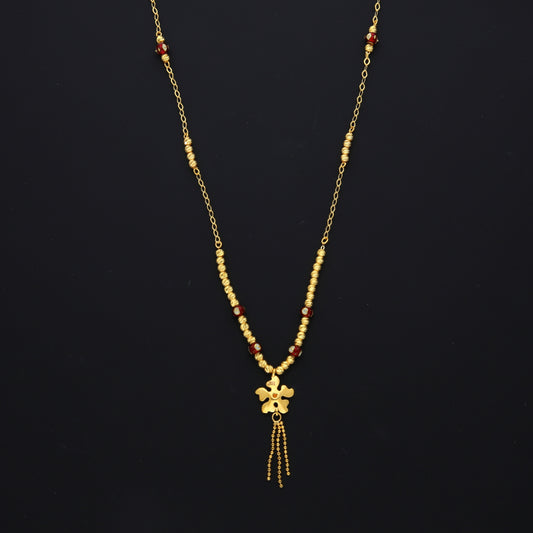 Gold Dangling Flower Charm Necklace 21KT - FKJNKL21KM10354