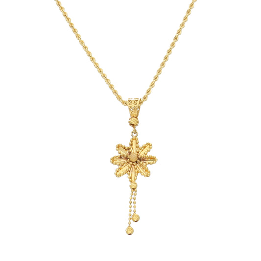 Gold Floral Star Drop Necklace 21KT - FKJNKL21KM11452