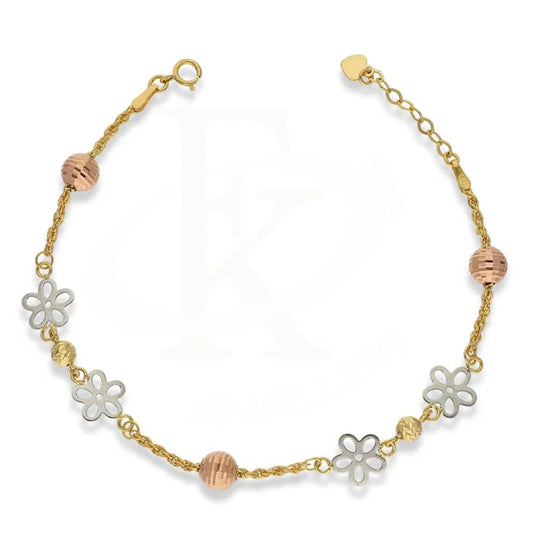 Tri Color Gold Beads and Flowers Bracelet 18KT - FKJBRL18K2977