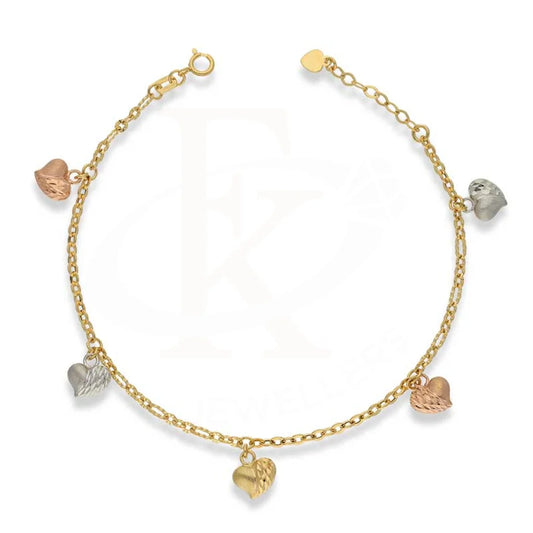 Tri Color Gold Hanging Hearts Bracelet 18KT - FKJBRL18K2974
