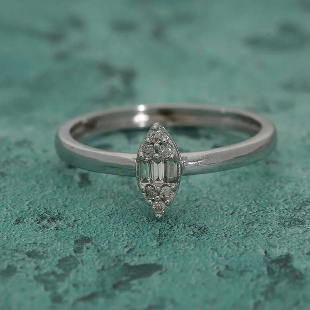 Diamond Emerald Cut Marquise Shaped Ring in 18KT White Gold - FKJRN18K3121