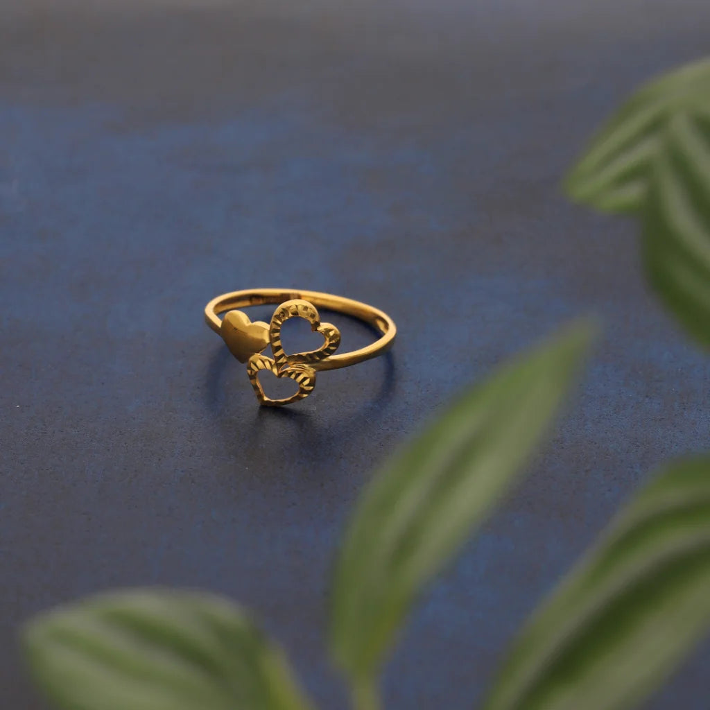 Gold Attached Triple Heart Ring 21KT - FKJRN21KM8413