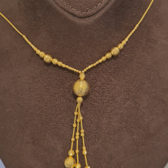 Gold Beaded Tassel Necklace 21KT - FKJNKL21KM10363