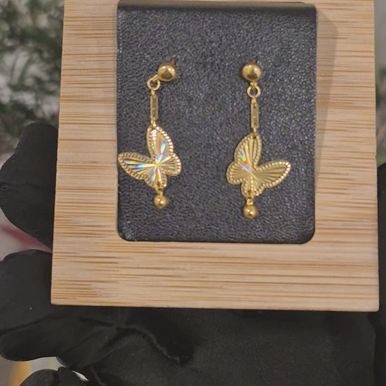 Gold Butterfly Bell Drops Earrings 21KT - FKJERN21KM11524