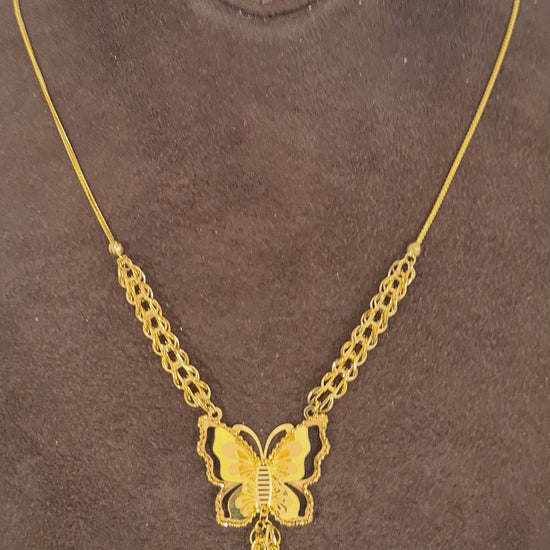 Gold Butterfly Drop Necklace 21KT - FKJNKL21KM10910