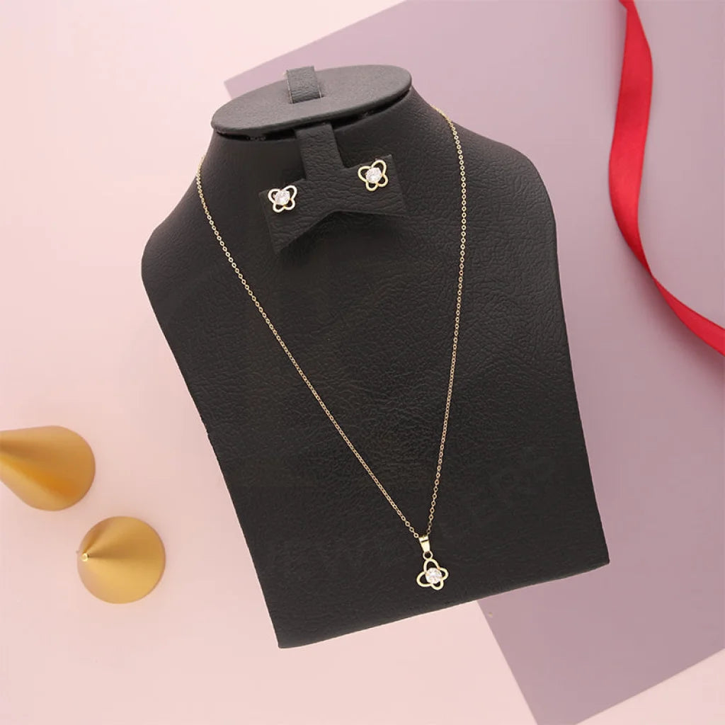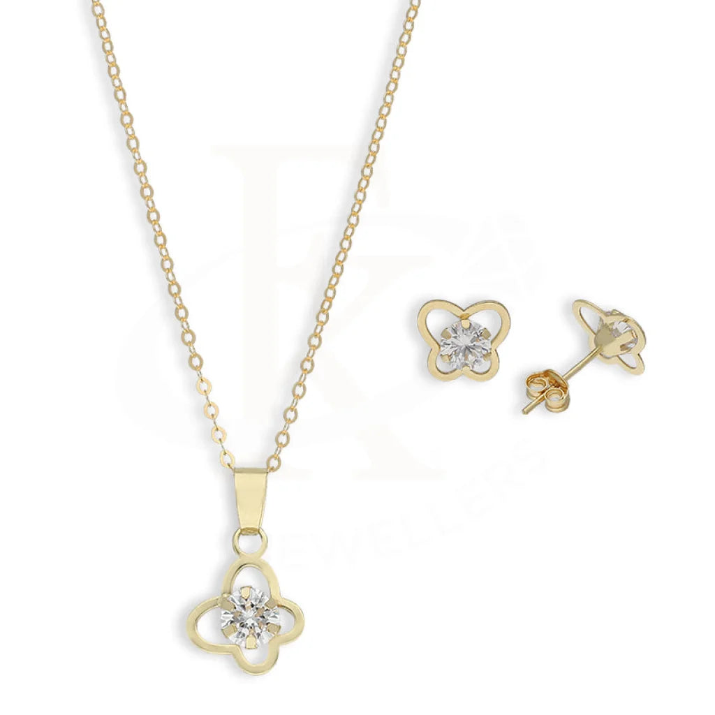 Gold Butterfly Shaped Solitaire Pendant Set (Necklace and Earrings) 18KT - FKJNKLST18K5581