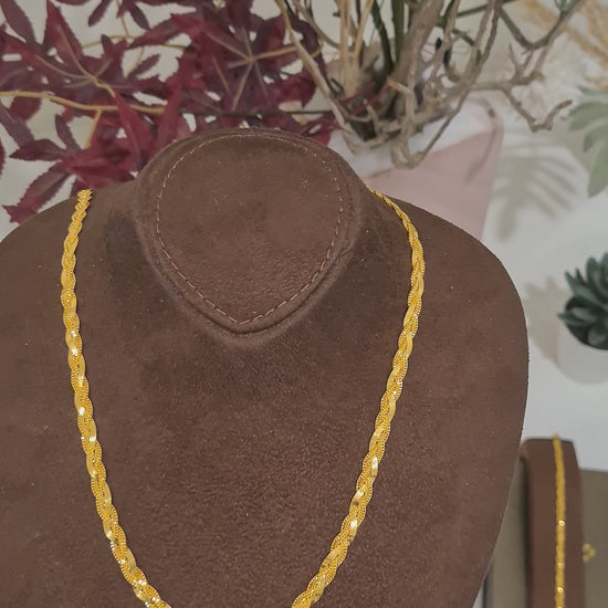 Gold Classic Braided Chain Set (Chain with Bracelet) 21KT - FKJCNST21KM10389