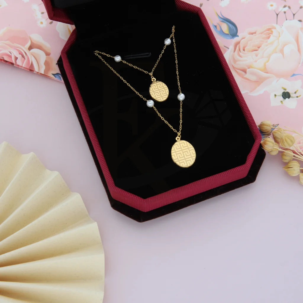 Gold Classy Line Pattern in Hanging Oval Necklace 21KT - FKJNKL21KM8194