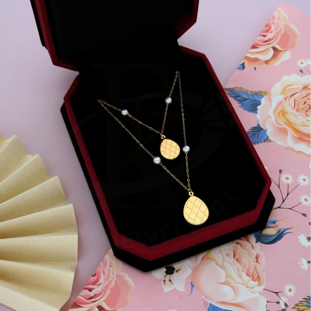 Gold Classy Old Pattern in Hanging Oval shaped Necklace 21KT - FKJNKL21KM8452