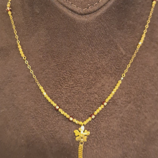 Gold Dangling Flower Charm Necklace 21KT - FKJNKL21KM10354